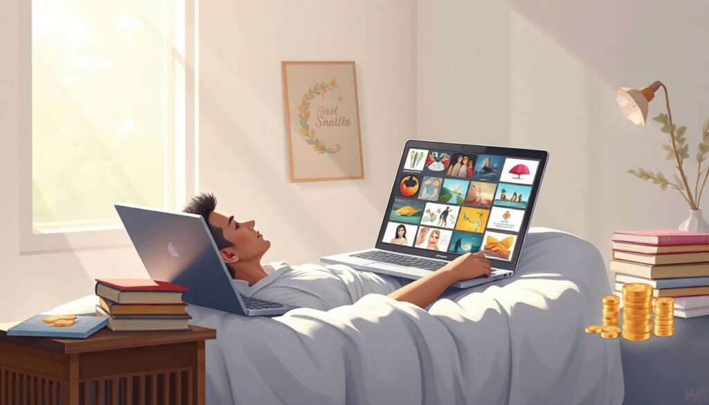 - Création de contenu : Écrire un e-book ou créer une formation en ligne peut rapporter de l’argent après la vente initiale. Vendre vos photos sur des banques d’images ou composer de la musique pour des licences génère aussi des redevances.